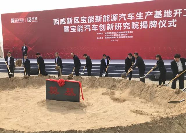 3月23日西咸新區(qū)寶能新能源汽車生產(chǎn)基地開(kāi)工暨寶能汽車創(chuàng)新研究院揭牌儀式在陜西省西咸新區(qū)秦漢新城舉行。該項(xiàng)目總投資約400億元,規(guī)劃產(chǎn)能100萬(wàn)輛(其中一期50萬(wàn)輛)新能源汽車及配套項(xiàng)目,整車和零部件制造產(chǎn)值將超過(guò)千億元。這是寶能在新能源汽車產(chǎn)業(yè)的重大布局,也是西咸新區(qū)開(kāi)工建設(shè)的千億級(jí)工業(yè)產(chǎn)業(yè)項(xiàng)目。